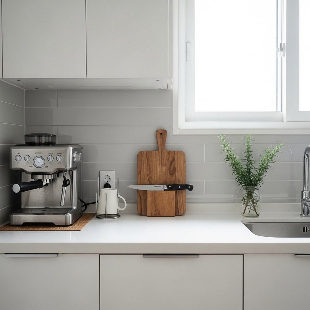 Avoid clutter. A clean countertop with only essential items creates a sleek, stylish look. Minimal decor makes a small kitchen feel more spacious and easier to use.