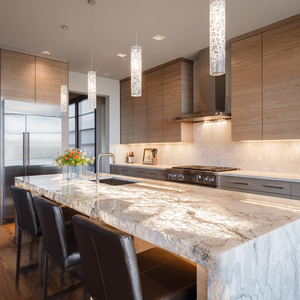 Good lighting improves both function and appearance. Under-cabinet lighting, pendant lights, or warm LED strips brighten work areas and add a modern touch.