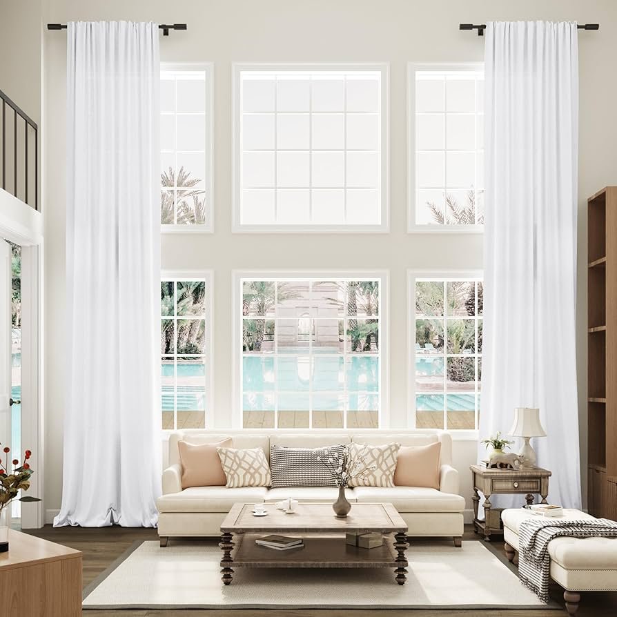Curtains play a major role in how tall and open a living room feels. Hanging curtain rods closer to the ceiling rather than directly above the window draws the eye upward. This simple trick makes the room appear larger and more refined. Light, flowing fabrics in soft neutrals add elegance without adding visual weight.